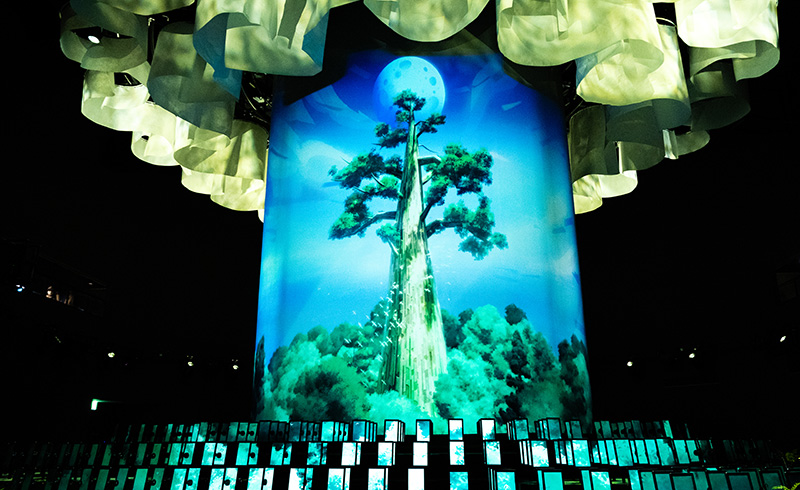 左)運営サポートを請け負った「TECH WORLD(テックワールド)」の外観 右)好評だった“テクノロジー×自然×アート”を融合させた体験型展示